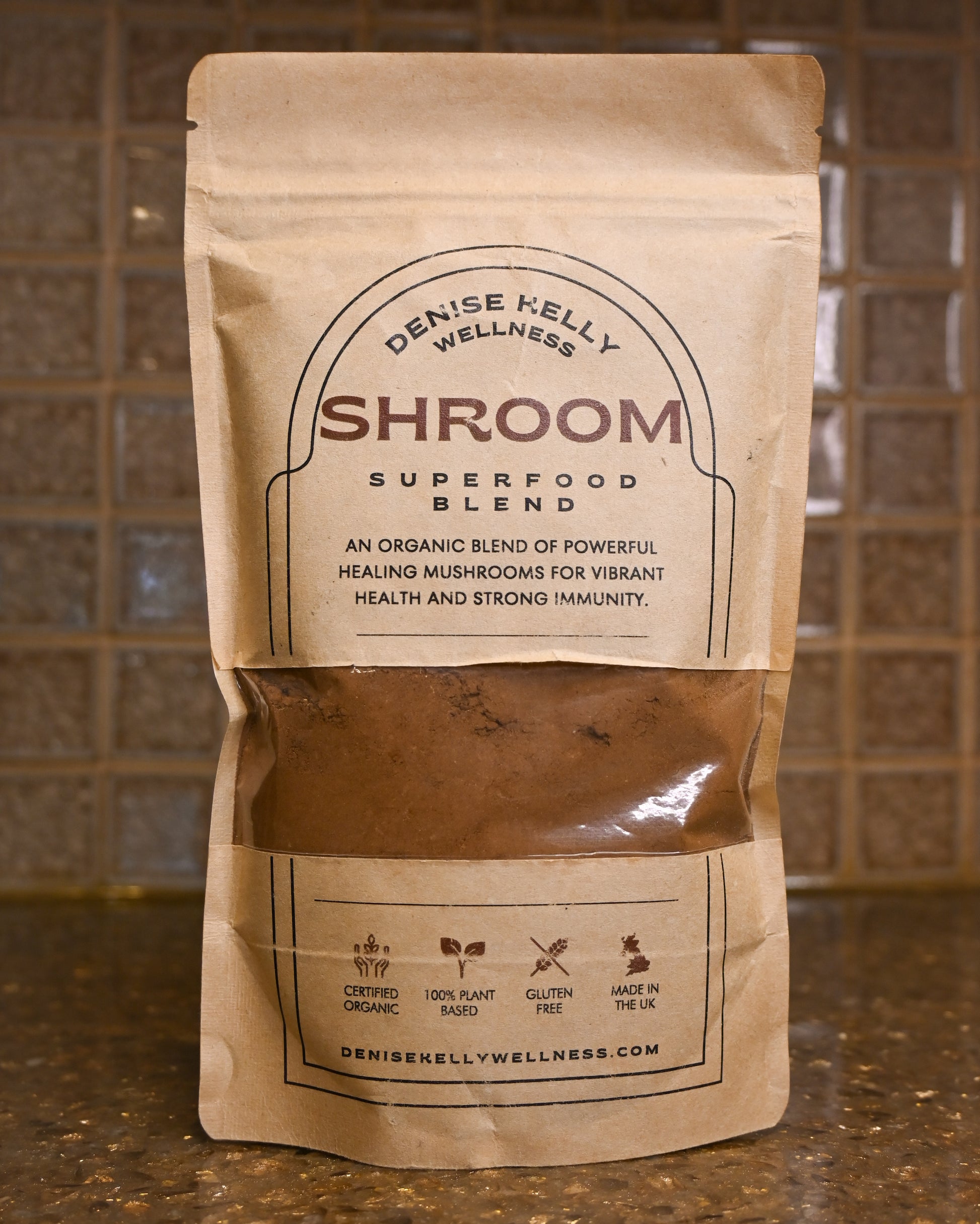 Shroom - Fortify your immune system with our SHROOM blend, featuring a powerful combination of five healing mushroom powders. This blend not only enhances your immunity but also promotes relaxation and improves overall wellbeing, making it the perfect addition to your daily routine.
